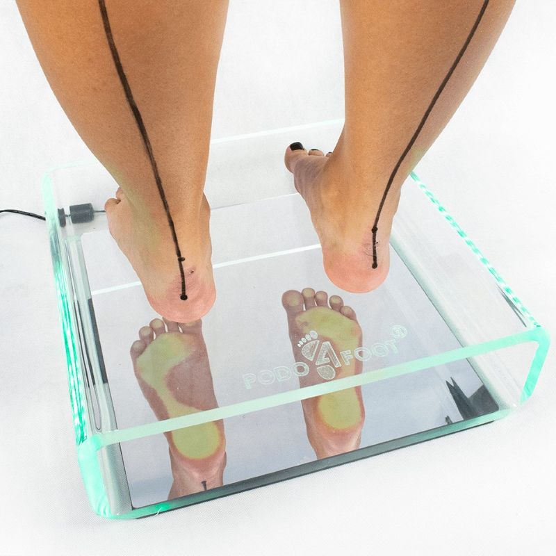Podoskop diagnostyczny Podoskop diagnostyczny Podo4Foot® CLASSIC, to urządzenie wykorzystywane w podologii oraz rehabilitacji do oceny ustawienia stóp i rozkładu obciążeń. Został wykonany z trwałych materiałów – płyty pleksi (polimetakrylanu metylu), a jego podstawa składa się z kwadratowych płytek aluminiowych oraz PCW, co zapewnia stabilność i odporność na uszkodzenia. Wbudowane diody o mocy 21 W gwarantują odpowiednie oświetlenie, a lustro pleksi umożliwia precyzyjną obserwację odbicia stóp. Urządzenie ma kompaktowe wymiary 40 × 43 × 13 cm i waży 7,5 kg, dzięki czemu jest wygodne w transporcie oraz użytkowaniu w gabinecie.