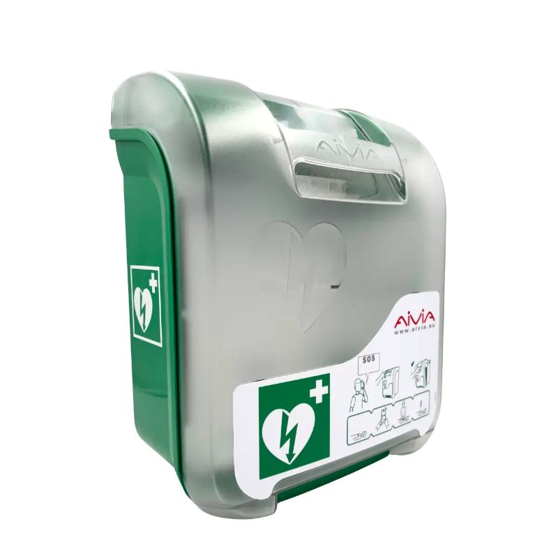 Szafka na defibrylator Aivia 200 V3 Heating Fanning Alarm Szafka na defibrylator Aivia 200 V3 Heating Fanning Alarm, charakteryzuje się wytrzymałą konstrukcją. Została wykonana z tworzywa ABS, a drzwiczki z poliwęglanu odpornego na promieniowanie UV i ogień. Materiały te gwarantują odporność na uderzenia (IK10) oraz szczelność (IP 54), chroniąc urządzenie przed pyłem i wodą. Aivia V3 może być użytkowana wewnątrz budynków, jak i na zewnątrz. Możliwość zarządzania temperaturą wewnątrz szafki, pozwala na regulowanie wentylacji i ochronę przed wilgocią, zamarzaniem czy przegrzaniem. Kapsuła posiada również adaptacyjne oświetlenie, które umożliwia łatwą lokalizację AED, nawet w nocy. Z przodu szafka oznakowana jest symbolem AED, instrukcją jak otworzyć szafkę i uproszczoną ikonografiką „łańcucha przeżycia”. Bezpieczeństwo przechowywanego AED zwiększa system wizualnego i dźwiękowego alarmu (diody LED i regulowana syrena 90 dB). Szafka na defibrylator jest idealnym rozwiązaniem w przestrzeni publicznej. Sprawdzi się w urzędach, kinach, na lotniskach, w firmach czy placówkach medycznych. Model Aivia 200 V3 Heating Fanning Alarm, jest innowacyjną kapsułą chroniącą automatyczne defibrylatory zewnętrzne w różnych środowiskach.