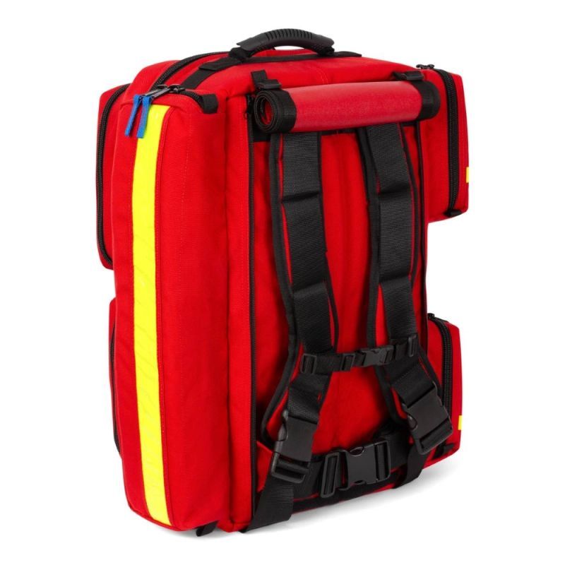 Plecak ratownika PRM posiada również wyjmowane ampularium mieszczące do 62 ampułek, które ułatwia przechowywanie i szybki dostęp do leków w sytuacjach wymagających natychmiastowej reakcji. Plecak w kolorze czerwonym, z odblaskowymi elementami zwiększającymi widoczność w trudnych warunkach oraz wyraźny krzyż św. Andrzeja, jednoznacznie identyfikuje plecak jako sprzęt medyczny. Materiał z którego wykonano plecak, to Cordura - charakteryzująca się wysoką odpornością na przetarcia, rozdarcia i wilgoć. Tkanina ta jest aż 10 razy bardziej wytrzymała niż klasyczne tkaniny bawełniane, 3 razy mocniejsza od standardowego poliestru i 2 razy trwalsza niż nylon. Wyposażenie plecaka zostało podane w pliku pdf.