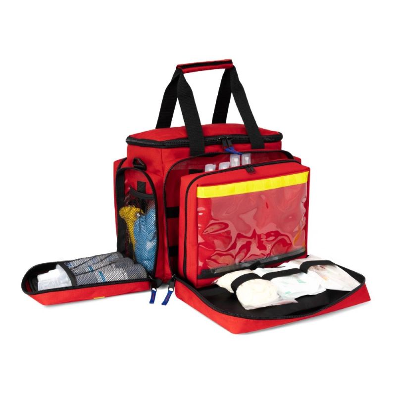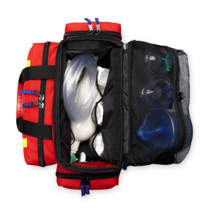 Torba w kolorze czerwonym z elementami odblaskowymi i oznaczeniem krzyża św. Andrzeja, zwiększa widoczność w warunkach akcji ratowniczej. Zestaw reanimacyjny Cordura to niezbędne wyposażenie dla zespołów ratownictwa medycznego, karetek pogotowia, oddziałów SOR oraz jednostek specjalistycznych. Skład zestawu reanimacyjnego został przedstawiony w pliku pdf.