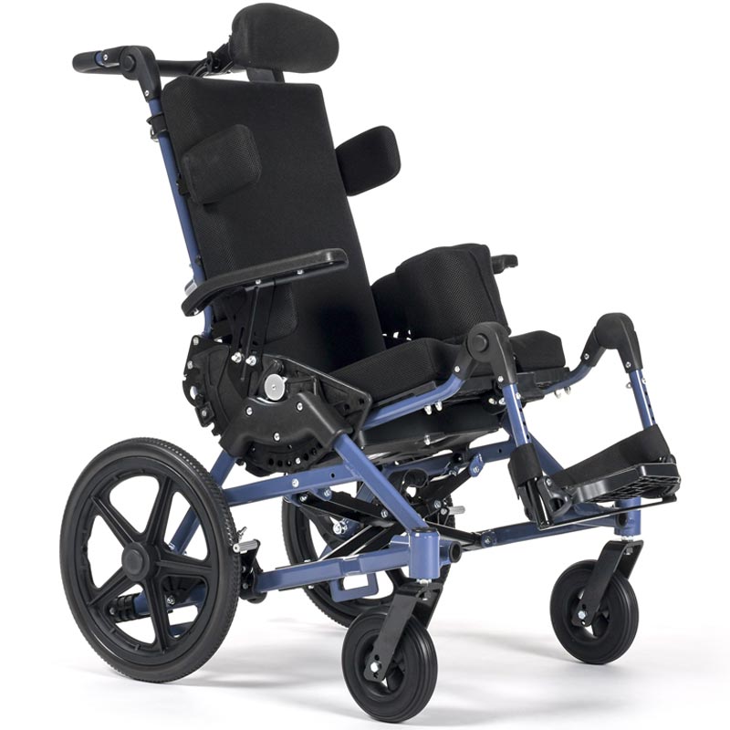 Wózek spacerowy multipozycyjny 2 w 1 CUB Wózek spacerowy multipozycyjny 2 w 1 CUB, to nowoczesne i wszechstronne rozwiązanie stworzone z myślą o dzieciach wymagających większego wsparcia w codziennym poruszaniu się. To wózek 2 w 1, który łączy funkcję klasycznego wózka spacerowego z właściwościami wózka rehabilitacyjnego - idealny zarówno do codziennego użytkowania, jak i w celach terapeutycznych. Dzięki szerokiemu zakresowi regulacji i dopasowywania do potrzeb dziecka, CUB rośnie razem z użytkownikiem i zapewnia pełne bezpieczeństwo oraz komfort. Wózek został wyposażony w zaawansowany system regulacji siedziska typu Tilt-in-Space, który umożliwia zmianę kąta nachylenia całego siedziska - od lekkiego odchylenia do pozycji bardziej leżącej. Taka funkcja pozwala skutecznie odciążyć miednicę i wspomóc prawidłowe ułożenie ciała dziecka, co jest szczególnie istotne w przypadku użytkowników z ograniczoną kontrolą postawy. Regulowane są również oparcie, podnóżki, zagłówek, podłokietniki oraz szerokość i głębokość siedziska, co daje pełną kontrolę nad dopasowaniem wózka do indywidualnych potrzeb. Trzecie koło Off Road w standardzie zapewnia szybki montaż na szybkozłączce i umożliwia jazdę w trudnym terenie (plaża, szutry, nierówne chodniki).